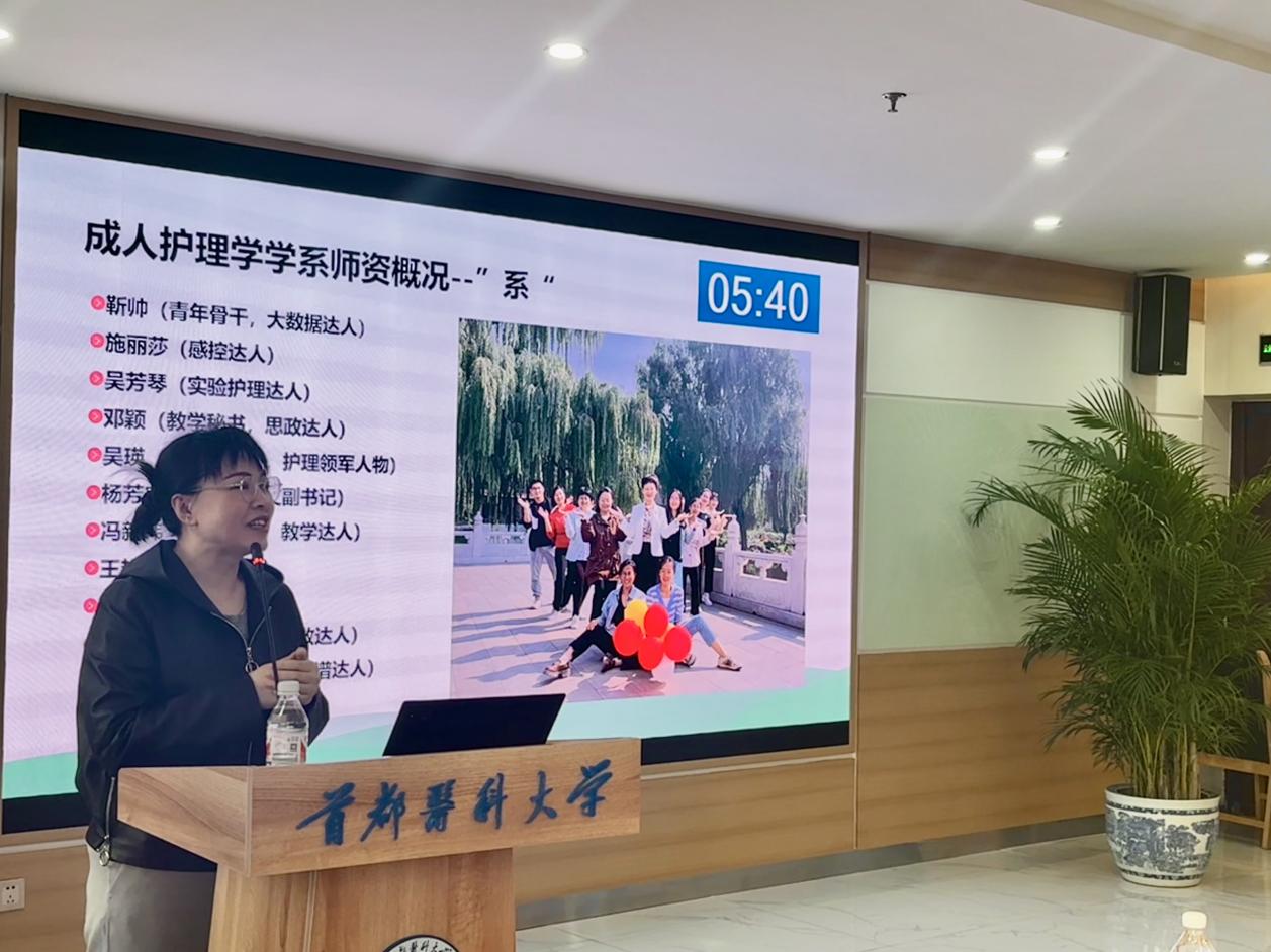 岳鹏以“成长·突破——基础护理学学系学科建设思考”为题汇报。
