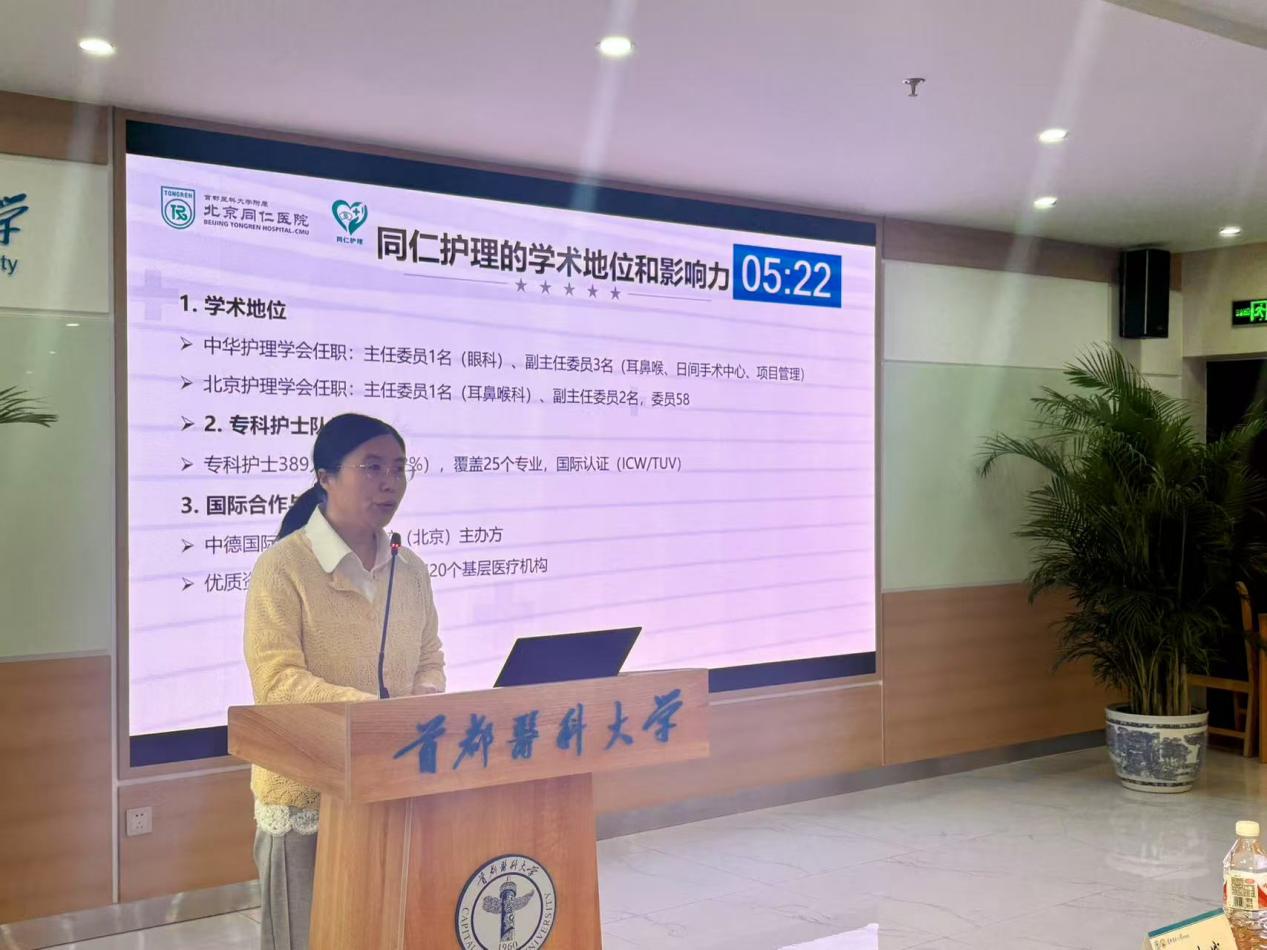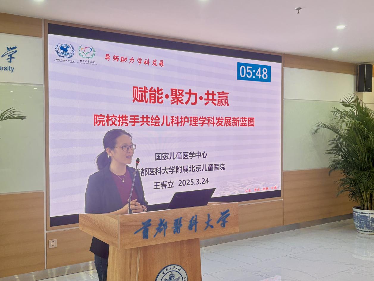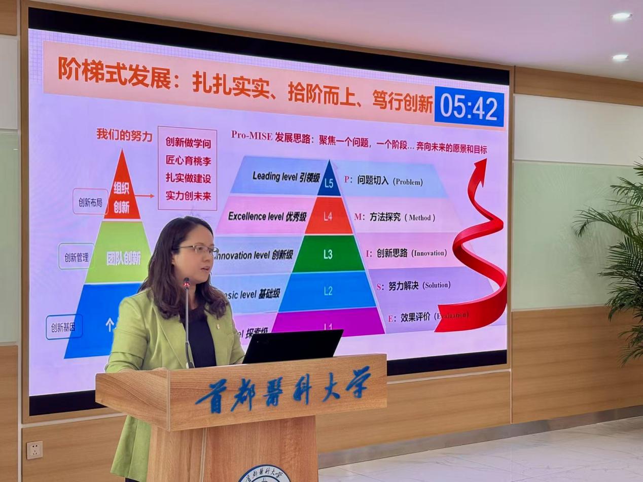 高丽以“以人才培养为根本,以创新思维为依托,助力护理学科发展”为题汇报。